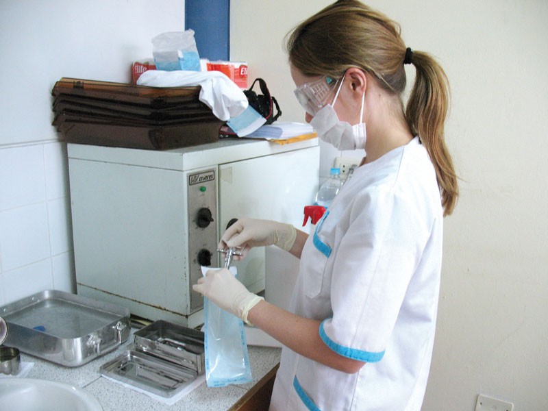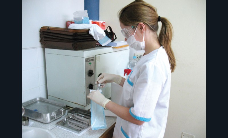 Travailler à l’étranger ne signifie pas forcément travailler n’importe comment, nous avons appliqué sur place les règles d’hygiène et de stérilisation habituelles. Une pièce a été dévolue aux soins et une autre pour le stockage du matériel et le traitement des déchets de soins. Malheureusement, le cabinet dentaire sur place ne disposait que d’un four à chaleur sèche de type Poupinel, nous avons donc utilisé principalement des instruments à usage unique. Pour le reste, comme le matériel de chirurgie et de parodontologie fourni par Hu-Friedy, nous avons désinfecté, séché et conditionné les instruments avant de les faire stériliser chez un praticien travaillant dans la banlieue huppée de Lima. Nous avons tenté de faire le maximum pour que ces enfants puissent bénéficier de soins consciencieux dans des conditions d’hygiène optimale.