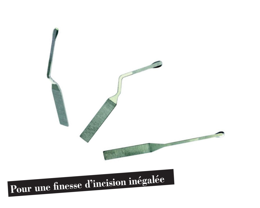 Bien entendu, ce type de produit correspond à des indications très spécifiques, mais nos évaluateurs ont été très séduits par les possibilités offertes parcette gamme de lames, qui améliore de manière significative la précision de leurs incisions, notamment dans tous ces protocoles chirurgicaux dans des sites de petite taille, où l’exigence d’économie tissulaire prédomine.