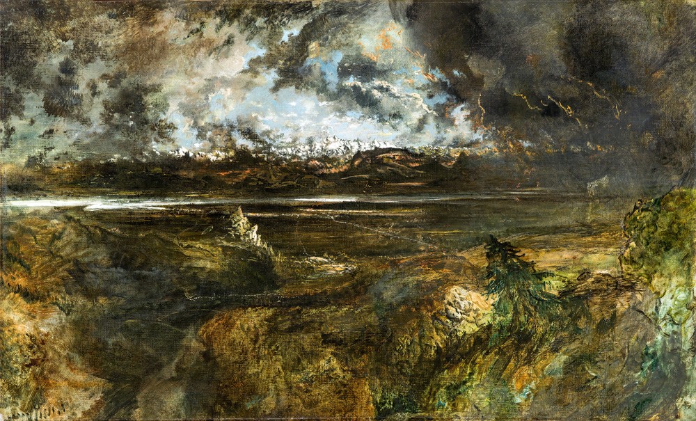 C’est l’autre Rousseau, pas Jean-Jacques mais Théodore, le peintre qui, né cent ans après, prône comme le philosophe un retour à l’état de nature – et va d’ailleurs le vivre en partie. Lui-même est une nature : parisien mais jurassien de souche, enraciné dans ses valeurs et tout d’un tronc quoique doux, il a tout de l’homme des bois avant même de les hanter. Ce n’est pas lui qu’on verra faire le voyage d’Italie pour se former : il le refuse et, en juin 1830, tourne le dos à la voie académique pour suivre son propre chemin d’apprentissage, à travers l’Auvergne, la Normandie, la Vendée, les Landes, les Pyrénées, le Berry, s’arrêtant au Col de la Faucille pour saisir cette ligne blanche du Mont-Blanc qu’il ne franchira jamais. Il en rapporte de solides compositions, puissants paysages pris pour eux-mêmes, dans leur paix ou leurs tourments, et plus volontiers dans leur accord avec la vie animale qu’avec une présence humaine à tous égards réduite ; mais aussi de nombreuses études de troncs, de rochers, de sous-bois, de marais qui témoignent d’une fine attention au réel. Aucune intention chez lui d’idéaliser une nature qu’il se refuse à traiter comme un fond, comme un décor pour scènes champêtres, mythologiques ou bibliques, ce qui est pourtant la condition exigée pour la traiter. La réfutant, il a renoncé au concours du Prix de Rome. Mais les maîtres d’alors sanctionnent ce non-respect des traditions, et la critique les suit. Avec l’audace de ses vingt-quatre ans, il déboule fort mal à propos dans un moment de grande crispation du Salon, valet d’un goût louis-philippard aussi contesté que ce pouvoir. Après quelques toiles acceptées, il envoie au jury de 1836 une grande composition pleine d’ambition, Descente des vaches dans le Haut-Jura. Ces vaches de jurés le descendent. Opiniâtre, il réitère quatre ans, essuie refus sur refus, finit par ne plus rien envoyer.