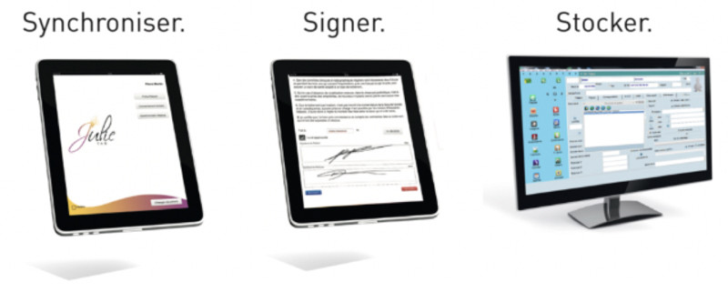 La tablette numérique tactile, équipement du quotidien, peut se révéler très utile pour les professionnels de santé que vous êtes. Prolongation naturelle du logiciel Julie, Julie TAB permet la modification et la synchronisation immédiate des documents des patients. (fiche du patient, questionnaire médical, consentement éclairé, devis…).