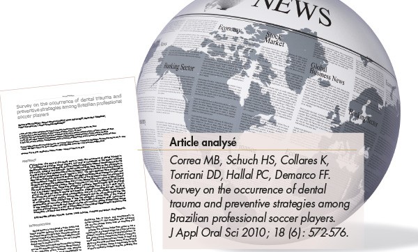 Pour la réaliser, des questionnaires ont été envoyés aux 40 clubs professionnels brésiliens de première et seconde divisions à propos de la prévalence des traumas dentaires subis pendant les matchs, de la conduite adoptée par le staff médical, de leurs connaissances relatives aux protège-dents et de la présence d’un chirurgien-dentiste dans le staff médical. Parmi les 38 réponses reçues, 71 % des médecins avec au moins une année d’expérience ont vu au moins un traumatisme dentaire et 29,6 % d’entre eux en ont vu plus de quatre. Les fractures dentaires sont alors le plus souvent constatées (74,1 %) suivies par les expulsions dentaires (59,3 %). Les joueurs les plus concernés sont les attaquants (59,2 %) et les défenseurs centraux (44,4 %) qui se disputent le plus âprement le ballon dans la surface de réparation où ont lieu le plus d’accidents. Concernant l’attitude des staffs médicaux face aux expulsions dentaires, 76,6 % des médecins des équipes pros estiment qu’une dent peut être réimplantée jusqu’à six heures après le trauma ou ignorent le délai imparti qui, selon l’Association Internationale de Traumatologie Dentaire, ne doit pas excéder une heure pour espérer un pronostic favorable.