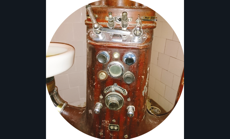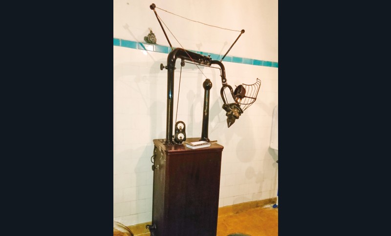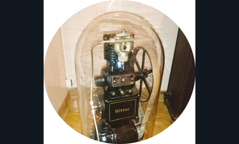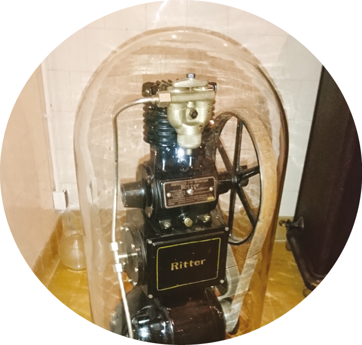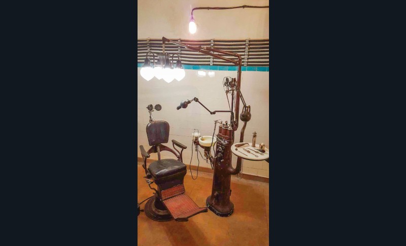 En 2018, l’ASPAD fait don du matériel d’un cabinet dentaire Ritter complet (Strasbourg décennie 1930, modèle acajou) (fig. 5a-c). Il est composé d’un équipement unit Ritter et fauteuil à pompe avec son éclairage quatre boules, remis en fonction par l’AMICORF, avec son spot à focalisation, son moteur électrique bras Doriot, équipé de son ventilateur, assisté d’un compresseur Ritter avec sa cloche verre 1935.
