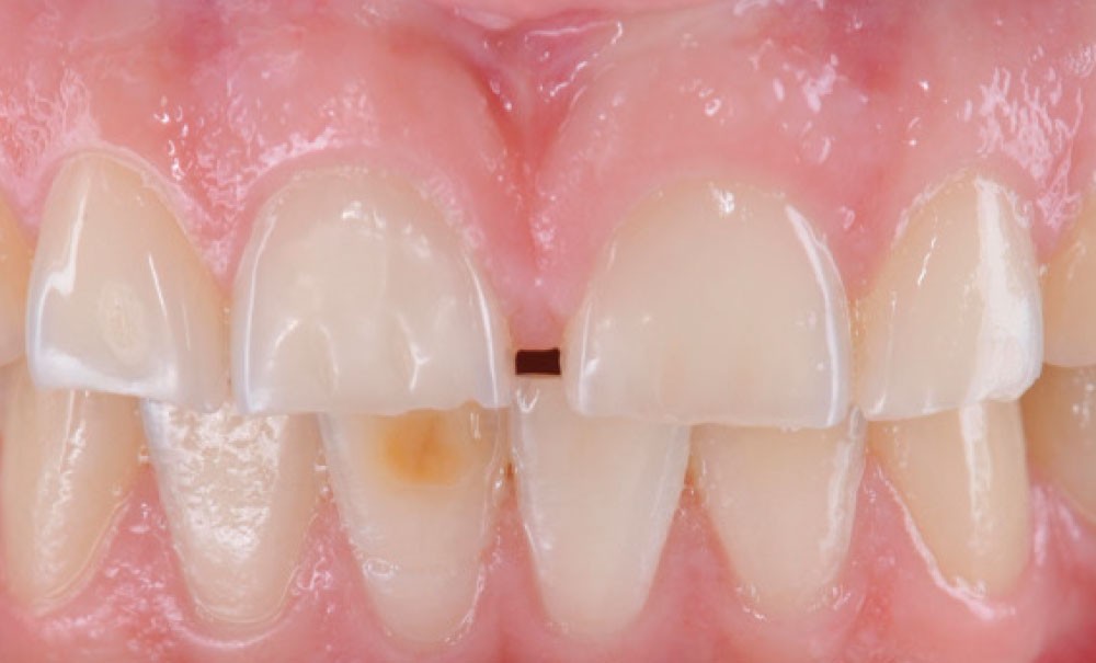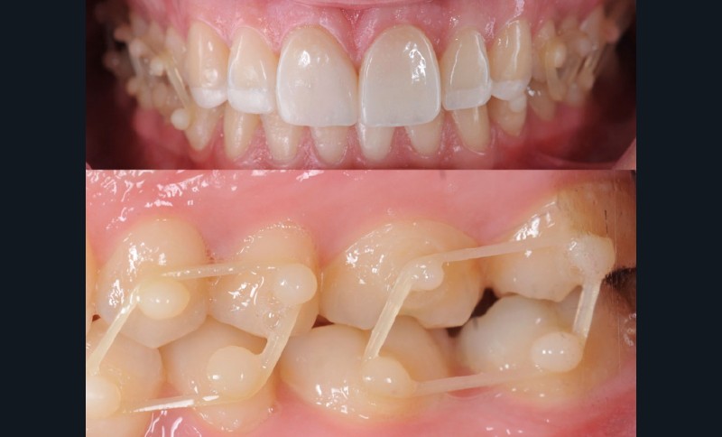 C.C. : Collaboration et coordination entre le chirurgien-dentiste généraliste et l’orthodontiste doivent être envisagées dès l’élaboration de ce type de plan de traitement pluridisciplinaire. Ainsi, une réflexion orthodontique – préalable au placement des RPCI antérieures – est nécessaire afin de définir le dispositif orthodontique le plus adapté (boutons, attaches orthodontiques, force/orientation/temps de port des élastiques) par rapport au type et à la quantité de mouvements à réaliser. Le praticien traitant et l’orthodontiste doivent donc communiquer sur la situation finale envisagée directement après le placement des RPCI antérieures. De plus, outre les informations classiquement données lors du démarrage d’un traitement orthodontique, l’intérêt d’une parfaite observance sur le port des élastiques intermaxillaires sera particulièrement expliqué au patient. En effet, elle conditionne la réussite de l’égression orthodontique rapide. Au final, l’établissement d’un rétroplanning avec le chirurgien-dentiste traitant est conseillé afin de placer le dispositif orthodontique rapidement après le placement des RPCI antérieures.