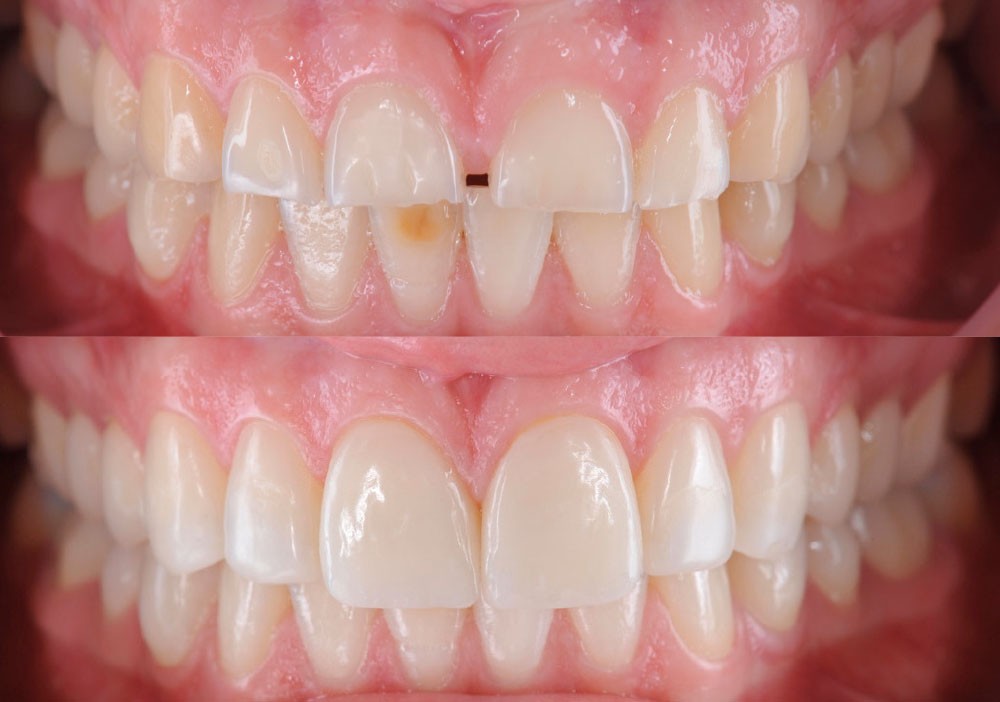 Visuels issus de : Orthodontic-assisted one step-no prep technique : A straightforward and minimally-invasive approach for localized tooth wear treatment using polymer-infiltrated ceramic network CAD-CAM prostheses. Amélie Mainjot, Carole Charavet. J Esthet Restor Dent 2020 ; 32 (7).