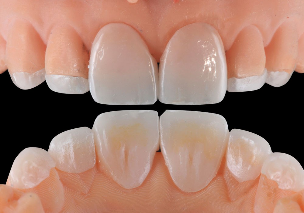 Sur une période de suivi de 15 mois à presque 4 ans selon les cas, les auteures n’ont déploré aucun problème avec les facettes palatines (qui, parfois, venaient aussi recouvrir la face vestibulaire comme une enveloppe), et ce malgré les problèmes de bruxisme. Lorsque certaines dents postérieures nécessitaient aussi des RPCI (sous forme de table occlusales très fines, jusqu’à 0,2 mm d’épaisseur), de petites fractures marginales ont parfois été observées sur les parties les plus fines qui étaient situées dans des zones de contacts occlusaux. Elles furent facilement polies, tandis que la satisfaction générale des patients sur les multiples aspects du traitement fut excellente.