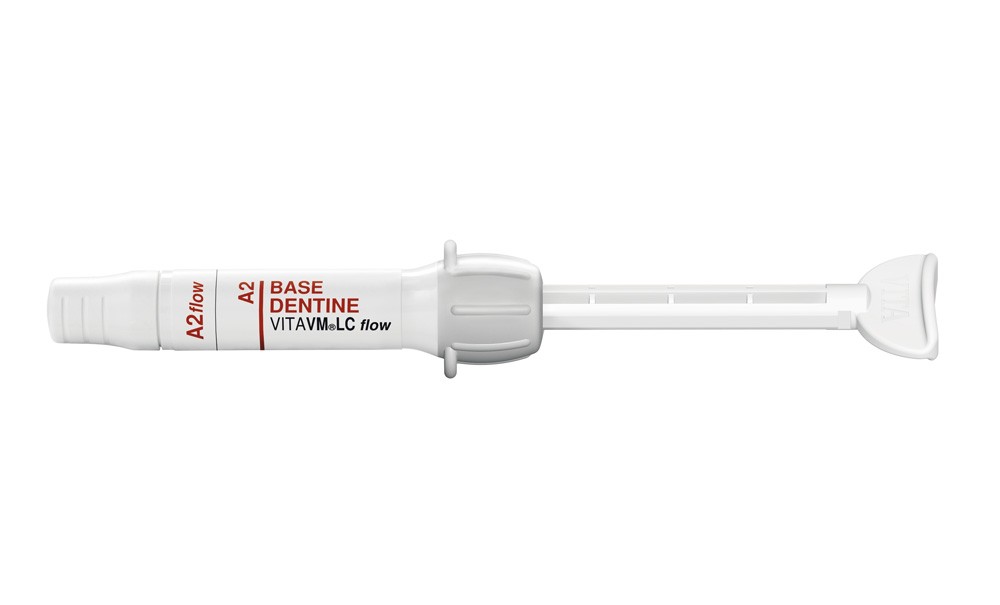 La résine composite photopolymérisable Vita VM LC flow forme un système complet pour des incrustations de composite, de la dentine à la zone incisale. Le spectre complet VM LC Base Dentine est maintenant proposé en version fluide. Selon les préférences du prothésiste, il est ainsi possible de créer un corps de dentine avec une résine composite fluide après les couches opaques et chromatiques.