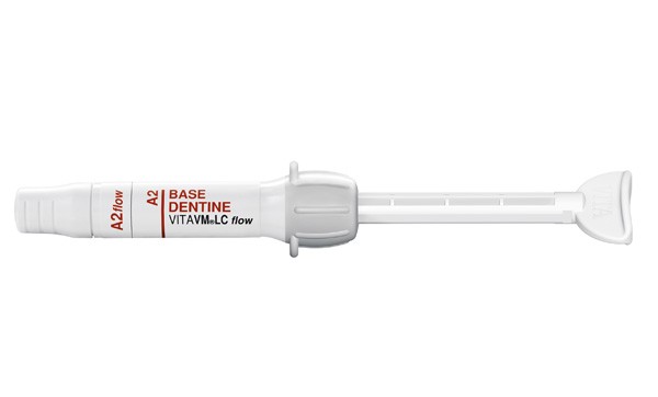 Le spectre complet VM LC Base Dentine dans les couleurs Vita classical A1-D4 est maintenant proposé en version fluide. Selon les préférences du prothésiste, il est ainsi possible de créer un corps de dentine avec une résine composite fluide après les couches opaques et chromatiques. Ceux qui sont habitués à travailler au pinceau pour créer les couches de céramique sont fondamentalement avantagés dès le départ. La particularité de Vita VM LC flow est que le matériau composite thixotrope est fluide pendant la modélisation puis stable par la suite. Cela permet d’appliquer précisément les masses. Ces dernières peuvent être appliquées, au choix, au pinceau, avec un instrument ou directement avec la seringue.