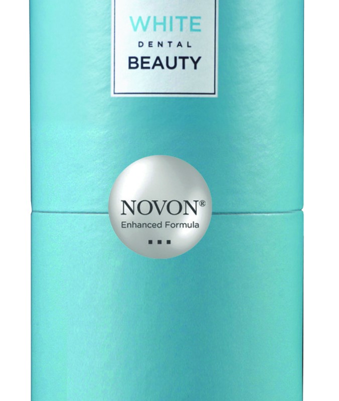 La gamme de blanchiment White Dental Beauty évolue avec une nouvelle formule. Ainsi, les gels, fabriqués par Optident et disponibles en 6 % de peroxyde d’hydrogène, ainsi qu’en 10 % ou 16 % de peroxyde de carbamide, intègrent désormais une technologie Novon® qui produit un effet de blanchiment renforcé et assure la stabilité et la neutralité du pH dans la gouttière de blanchiment. Cette augmentation rapide du pH de neutre à alcalin assure une diffusion plus importante et plus efficace d’ions de perhydroxyle et entraîne une action de blanchiment plus efficace. Par ailleurs, le Novon® permet de conserver le produit à température ambiante.