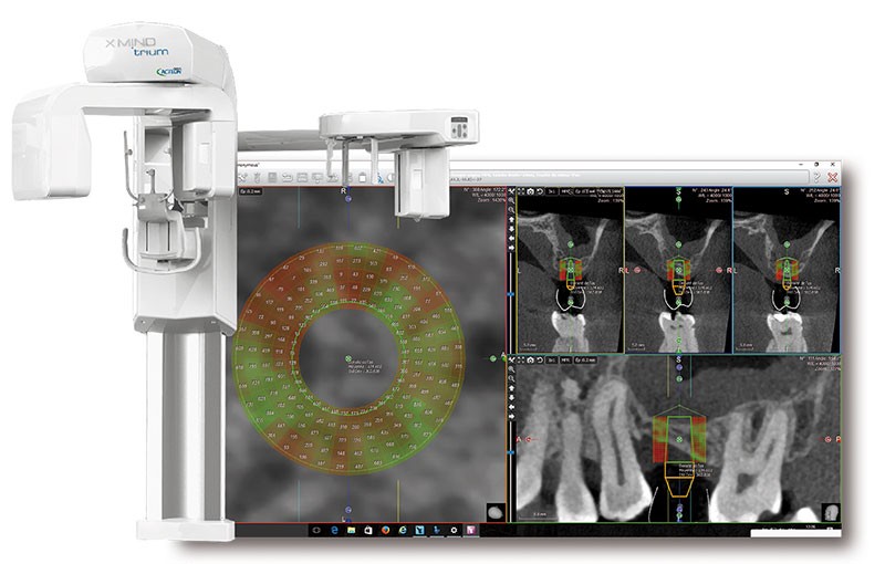 Une analyse précise et détaillée du volume osseux existant est fortement recommandée afin de réduire les complications liées à la pose d’implants. C’est pourquoi X-Mind Trium et son logiciel Acteon Imaging Suite permettent d’afficher, en un simple clic, la mesure de densité osseuse tout autour de l’implant.