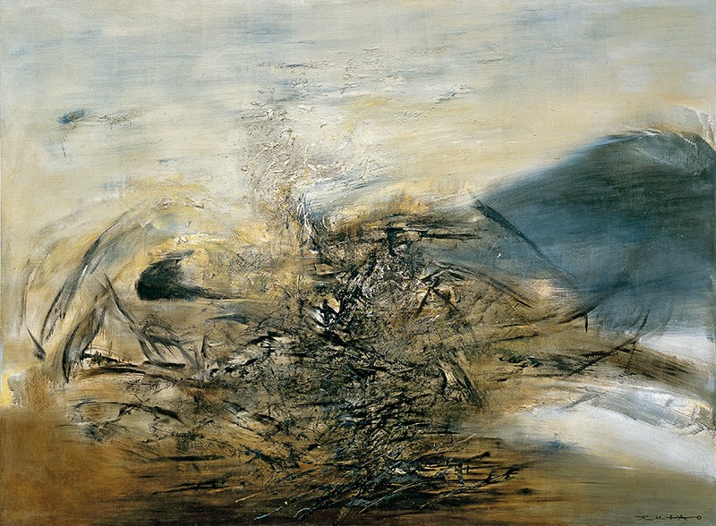 Avec sa force souriante, Zao Wou-Ki s’affirme peintre, mais ni de paysages, ni chinois, ni abstrait. Il préfère le mot de « nature » à celui de « paysage » et se refuse tout autant à faire des « chinoiseries » (selon son expression) que des toiles indéchiffrables. Comme tout peintre, il a le souci de dire ce qu’il voit et comprend, mais aussi le désir de parler à tous, ce qui suppose d’être audible et lisible et le fait se tenir à une certaine lisière de la pure abstraction, veillant à conserver une forme de narrativité. Pas tout à fait abstrait donc, et encore moins chinois : il ne tient pas à être étiqueté et entend prendre des distances avec la Chine. Le jeune homme qui débarque en France en 1948 n’a pas attendu Mao pour faire son Grand bond en avant. Derrière lui, il laisse ses maîtres, cantonnés à la copie, aussi bien que les « seigneurs de la guerre » coupeurs de têtes qui dépassent, empreinte rétinienne sans doute plus profonde qu’on ne le pense.