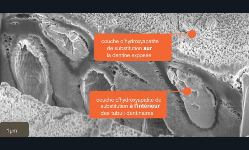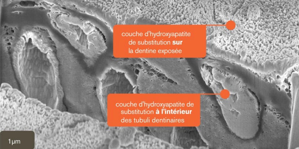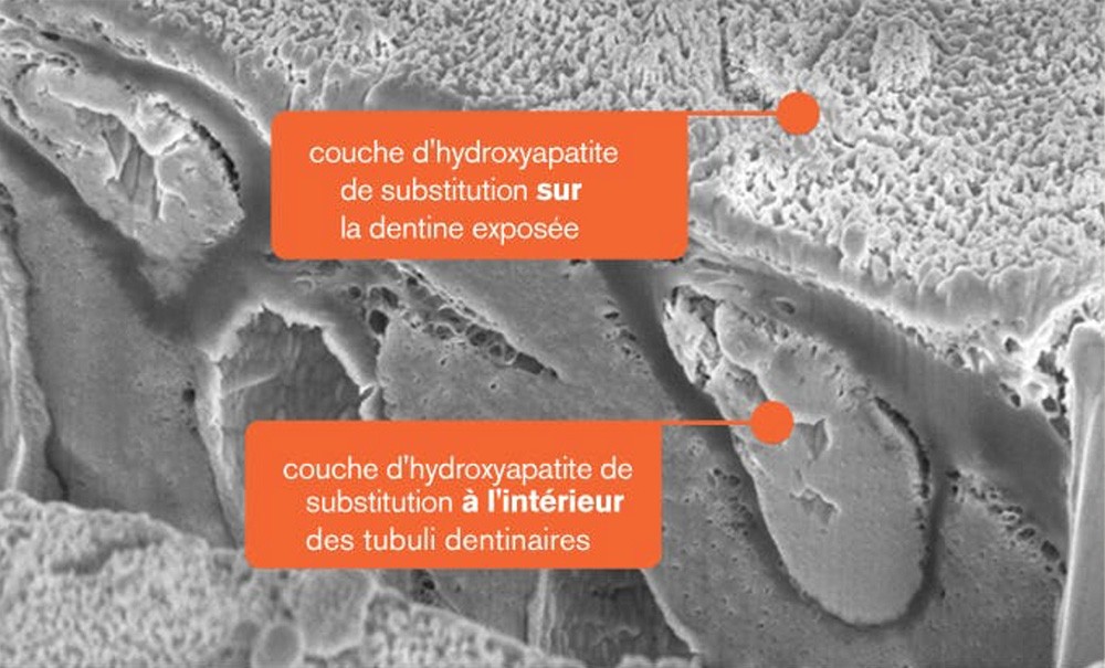 Cette formule permet la formation d’une couche minérale réparatrice d’hydroxyapatite de substitution résistante aux attaques acides et apporte une protection durable contre l’hypersensibilité dentinaire.*