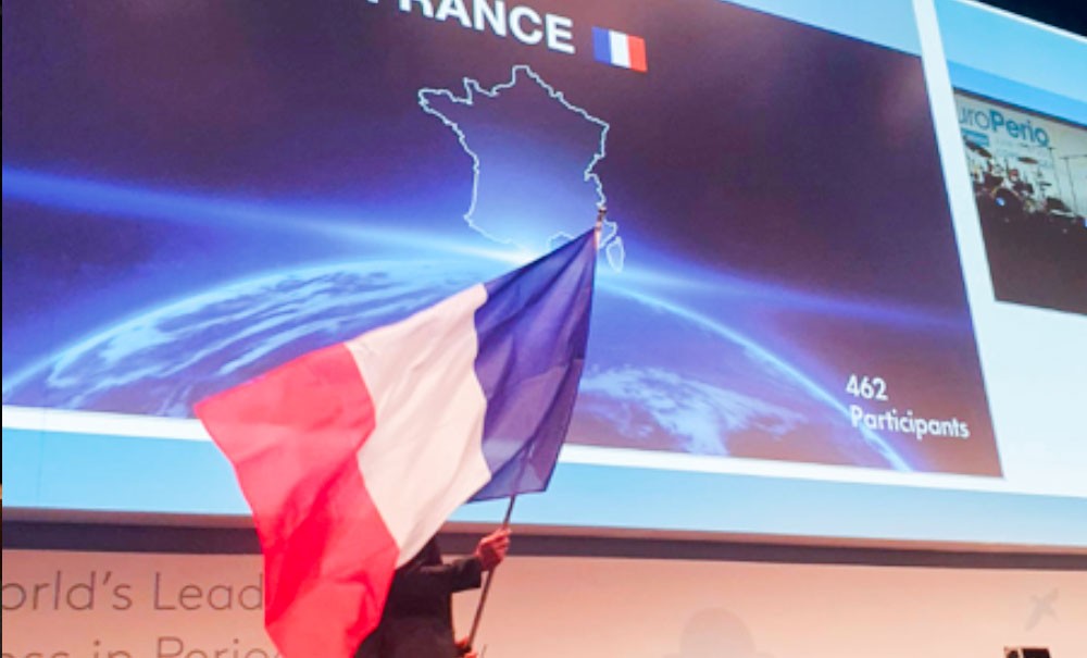 La France bien représentée ! Moment toujours attendu : la célèbre séance inaugurale avec le défilé des drapeaux des pays abritant une société faisant partie de l’European Federation of Periodontology (EFP), la Société Française de Parodontologie et d’Implantologie Orale (SFPIO) pour la France.