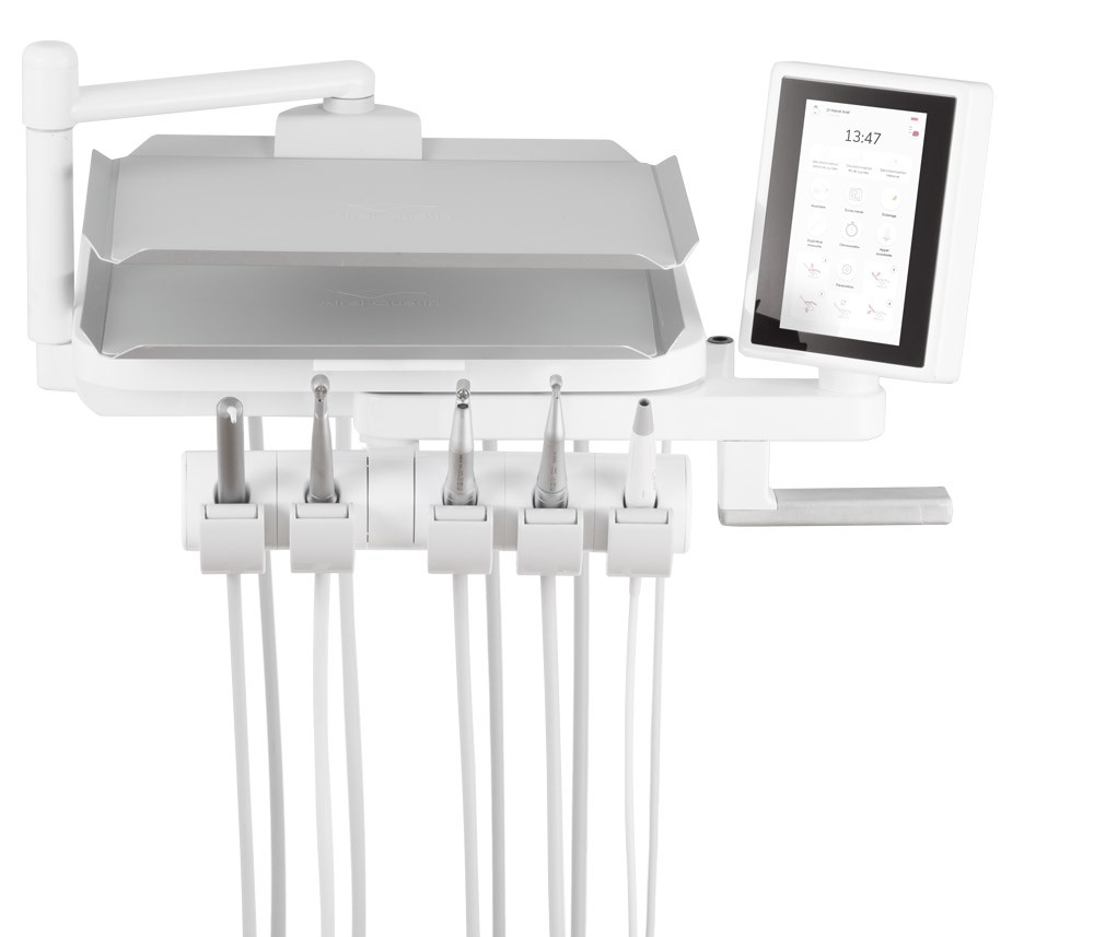 Pour le fabricant hexagonal bien connu, c’est l’unit dentaire qui doit s’adapter au dentiste et non l’inverse. Airel Quetin a donc créé une tablette porte-instruments qui peut s’adapter à toutes les gammes de fauteuils dentaires de l’enseigne.