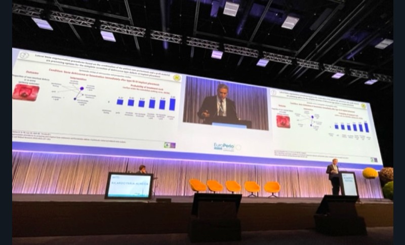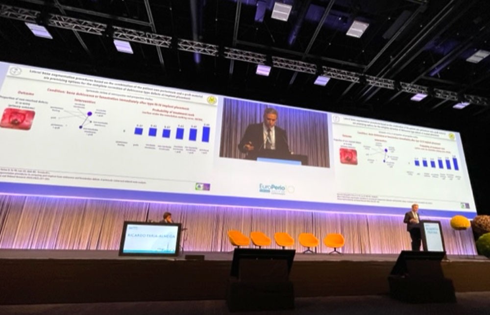 Le modérateur R. Faria-Almeida a planté le décor en rappelant qu’après la perte/l’extraction d’une dent se produisent toujours un remodelage osseux et une résorption qui rendent parfois la pose de l’implant difficile voire impossible. Dans ces situations cliniques, il existe une grande variété de techniques qui tentent de réduire le remodelage/perte osseux pour permettre la pose d’implants. Quoi qu’il en soit, parfois, la réabsorption osseuse s’est déjà produite, nous devons donc être en mesure de gérer les techniques de régénération osseuse pour placer l’implant au bon endroit. Les conférenciers ont présenté différentes approches que nous pouvons utiliser au maxillaire postérieur pour résoudre l’absence d’os, selon la situation clinique