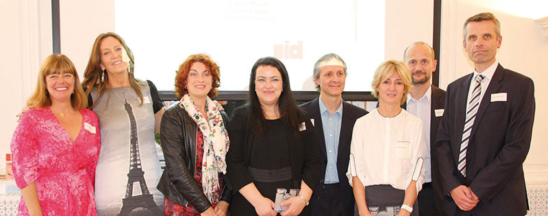 De gauche à droite, Virginie Monnet-Corti, membre du jury ; Michèle Reners, coordinatrice du jury et rédactrice en chef de L’Information Dentaire ; Claudie Damour-Terrasson, présidente d’Espace id ; Wiem Bouaziz, lauréate ; Erik Le Sueur, lauréat ; Isabelle Prêcheur, qui représentait Valérie Pouysségur, lauréate ; Emmanuel d’Incau, membre du jury ; Christophe Brouttier, vice-président Cartes pour les Petites et Moyennes Entreprises American Express France.