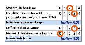 Indication de prise en charge du bruxisme du fait de la réhabilitation dentaire à réaliser.