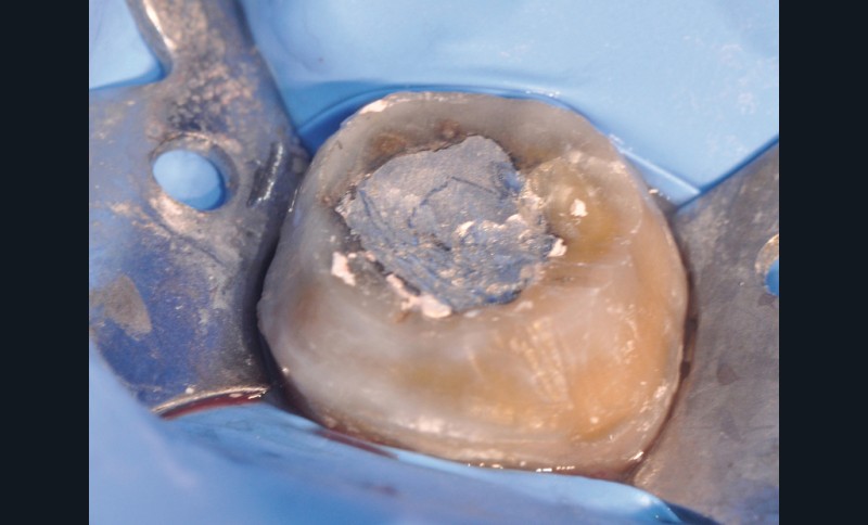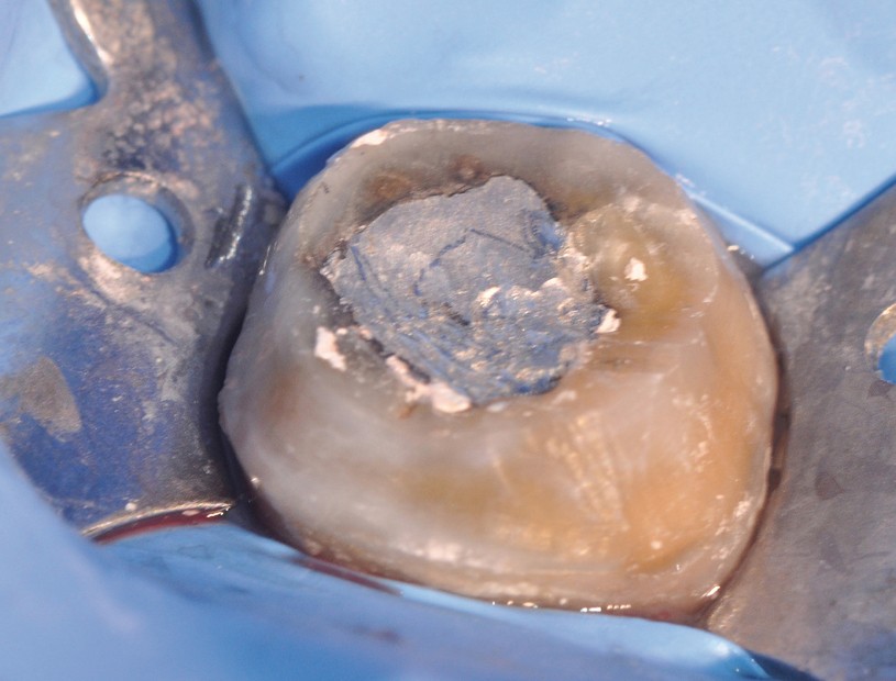 Une solution sans tenon a été proposée en 1995 par Pissis [21] avec l’avènement des prothèses tout céramique, et notamment l’In-Ceram. Ce traitement, dénommé par la suite endocouronne (endocrown), présente une alternative à l’utilisation d’ancrage radiculaire (fig. 7). Essentiellement indiquée dans le cas de molaires, cette option thérapeutique nécessite une hauteur camérale suffisante (de l’ordre de 2 à 4 mm) pour assurer une rétention pérenne [22].
