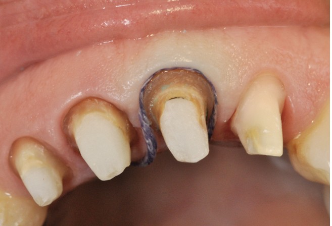 Si « l’enfouissement » des limites a été très souvent une orientation clinique systématique, cette position de la jonction dentoprothétique doit maintenant répondre à une réflexion clinique qui allie la nécessité esthétique à la qualité du phénotype parodontal. En effet, les limites intrasulculaires peuvent être à l’origine de traumatismes du parodonte [11,12] et devenir, avec le temps, des limites juxta- ou supragingivales. La prise en compte de principes respectueux du parodonte au cours des différentes étapes prothétiques (préparation, provisoire, empreinte, enregistrement du profil d’émergence et scellement) participe à la préservation dans le temps du résultat prothétique, tout en protégeant les tissus de soutien (fig. 4a-i).