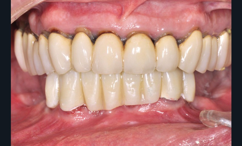 Monsieur C, 60 ans, se présente en consultation pour la réhabilitation prothétique de l’arcade mandibulaire, actuellement réhabilitée de manière provisoire (fig. 1).