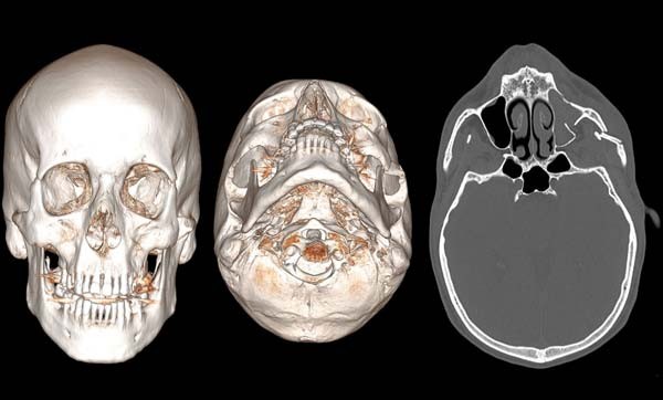 Un examen tomodensitométrique (TDM) du massif facial est demandé, qui met en évidence une fracture zygomatique gauche isolée (fig. 1).
