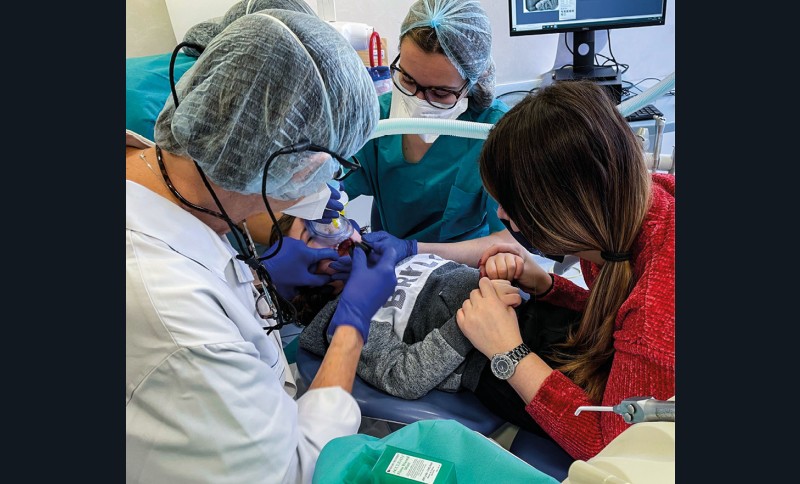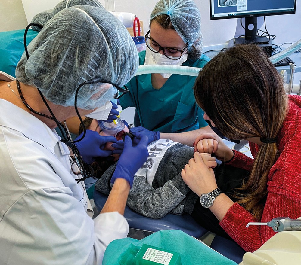 La santé orale des enfants constitue une problématique majeure en santé publique en France, clairement identifiée depuis plusieurs années [1-4]. Les enfants, et tout particulièrement ceux à besoins spécifiques (jeune âge, situation de handicap, pathologies générales, maladies rares) rencontrent des difficultés d’accès aux soins bucco-dentaires [5, 6]. Ils sont souvent difficiles à soigner à l’état vigile ou sous sédation consciente par inhalation du mélange équimolaire oxygène-protoxyde d’azote (MEOPA) en raison de comportements d’opposition et/ou de la complexité des réhabilitations bucco-dentaires (fig. 1). Ainsi, un nombre significatif de ces patients relève d’une indication de prise en charge bucco-dentaire sous anesthésie générale (AG) dans un établissement public ou privé [7-9] (tableau 1).