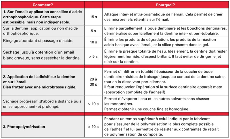 Il est compatible avec la méthode indirecte (pas d’inhibition avec les composites de collage) ; il présente un potentiel d’adhésion aux matériaux prothétiques (céramique, métal). Dans le cas de cette fiche de manipulation, c’est sa caractéristique multimode qui est décrite.