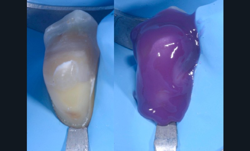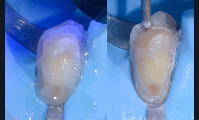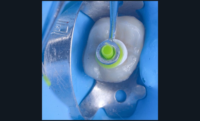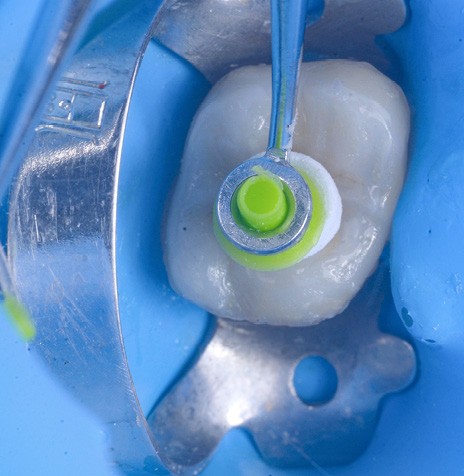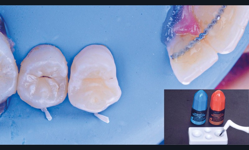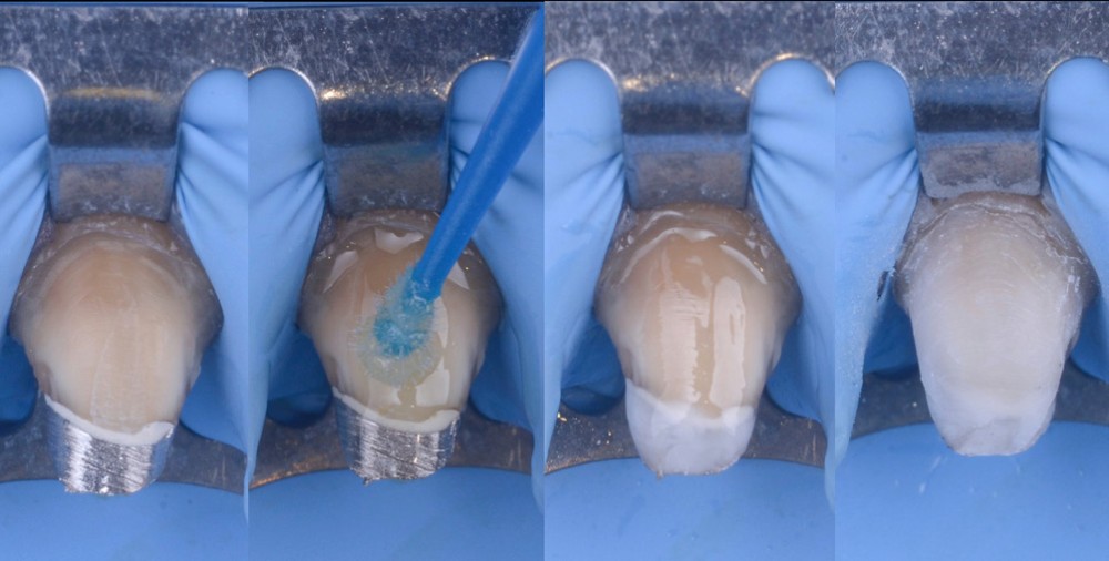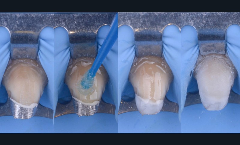- le microsablage à l’oxyde d’aluminium suivi d’un préconditionnement avec un primer contenant du MDP (fig. 12) ;