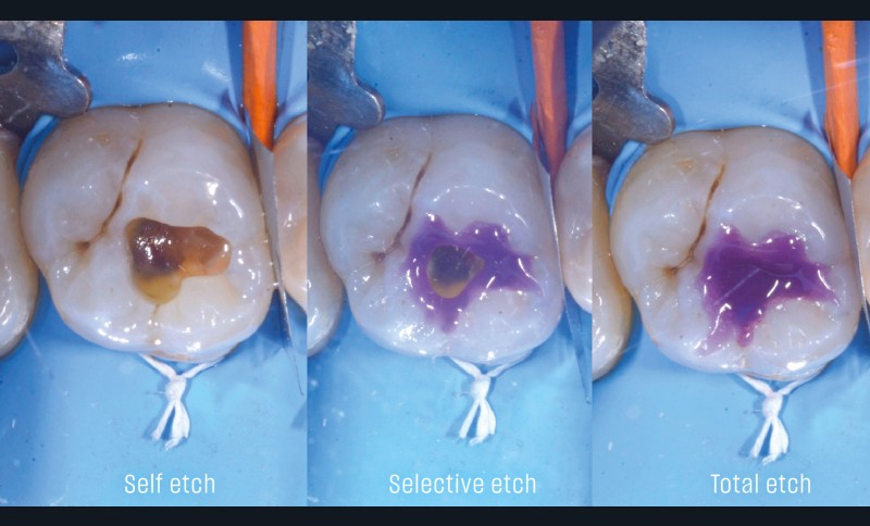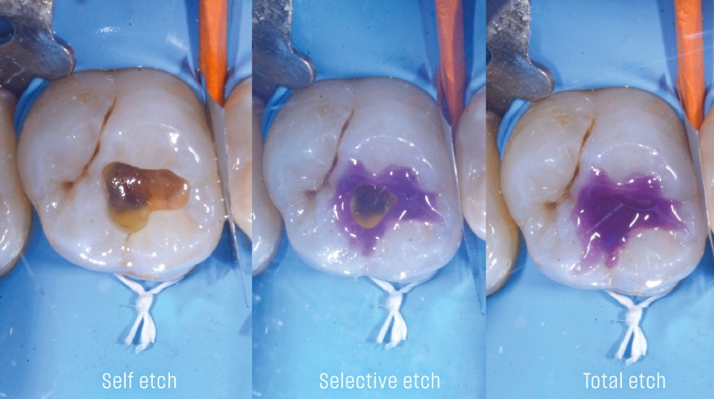 – Une utilisation multimode : il doit être utilisable en mode mordançage-rinçage total émail/dentine, en mode automordançant ou avec uniquement un mordançage sélectif de l’émail [13] (fig 2).