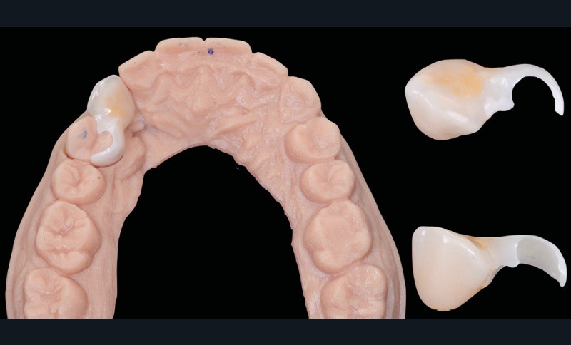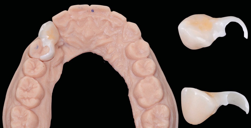 De nombreux adhésifs universels à base de MDP ont également été recommandés pour coller efficacement la zircone [83-85]. Quoi qu’il en soit, un collage adéquat avec les adhésifs universels nécessite toujours au préalable un traitement de surface abrasif [84, 86-88]. Attention toutefois, bien que des forces de collage acceptables aient été obtenues à court terme, leur durabilité après un vieillis–sement artificiel s’est avérée moins concluante sur la zircone [89, 90]. C’est pourquoi, Bömicke et al. recommandent aux praticiens de ne pas se fier uniquement à l’adhésion pour l’assemblage des restaurations en zircone [89] (fig. 13-18).