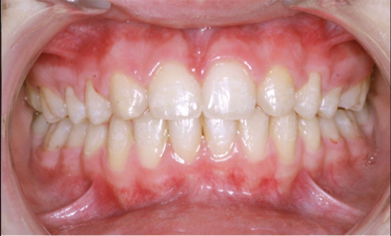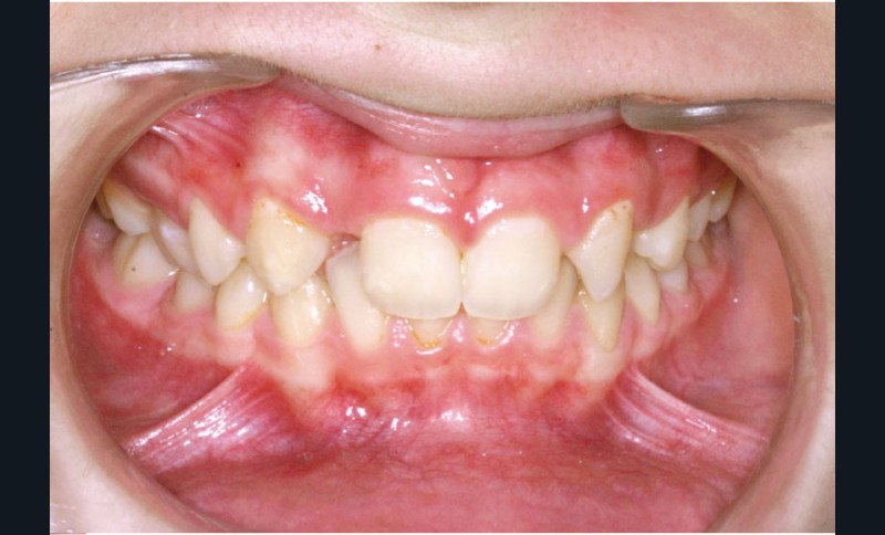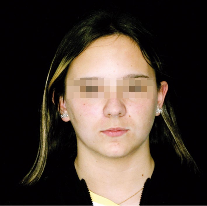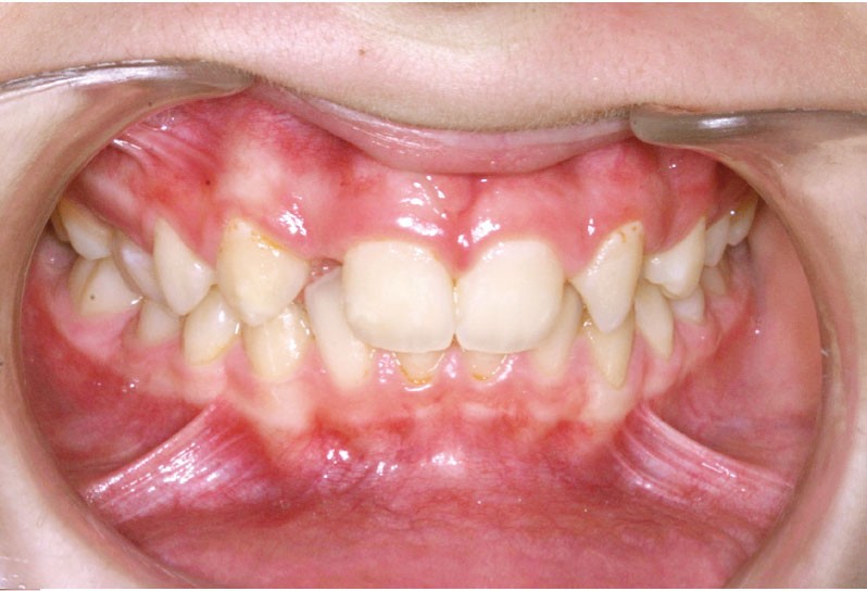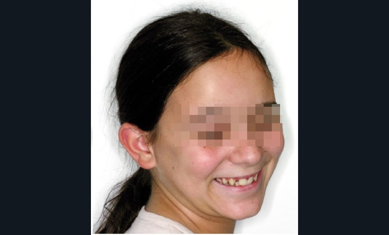 Ludivine T. âgée de 12 ans et demi présente une agénésie des deux incisives latérales maxillaires dans un contexte occlusal de classe II division 2 (fig. 1 à 3).