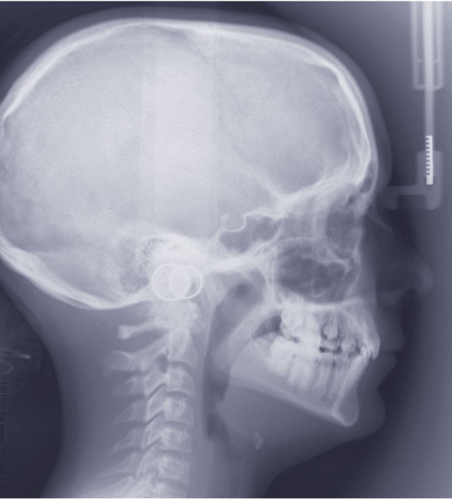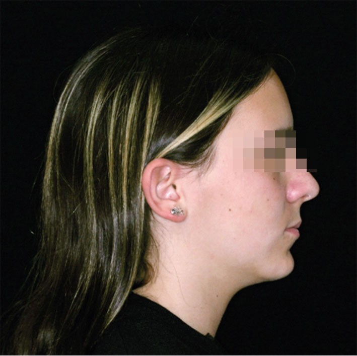 L’examen clinique exo-buccal révèle un visage équilibré en classe I squelettique tendance hypodivergente. De profil, le menton est marqué et le profil sous nasal très légèrement concave (fig. 1).