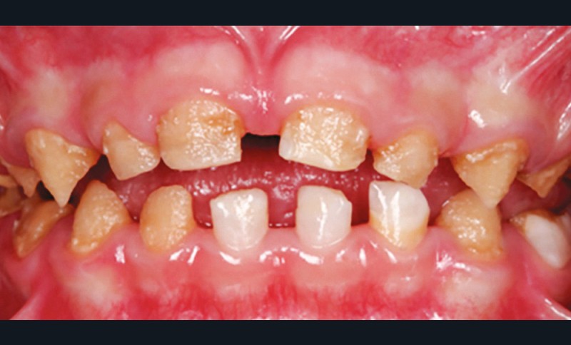 Dans les formes modérées à sévères, l’amélogenèse imparfaite peut avoir un impact important sur le développement psychosocial de l’enfant [3-6]. Les fractures, sensibilités et douleurs modifient la perception de la bouche par l’enfant. Cette zone normalement de plaisirs et fonctions devient une zone dépréciée dont l’enfant craint le contact lors des repas et du brossage. Au travers du regard des autres enfants, adultes et professionnels de santé, il prend conscience d’une différence pouvant être perçue comme négative, parfois honteuse, et avoir un impact sur l’estime de soi. Les parents ont des craintes par rapport à cette maladie qui peuvent être transmises et ajoutées à celles de l’enfant [7]. Dans certaines familles, il existe une transmission héréditaire de la souffrance psychosociale.