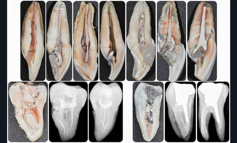 La connaissance des morphologies externe et interne des dents est indispensable pour déjouer les pièges de l’anatomie endodontique, facteurs d’échec des traitements endodontiques. En 1950, Grossman s’interrogeait sur leur intérêt de par la complexité des canaux [1]. Pour tout traitement endodontique, de nombreux paramètres sont à analyser, comme l’anatomie du système canalaire et de la région apicale, le nombre et la forme des racines, les canaux accessoires, les anomalies… [2]. Par ailleurs, les modifications histologiques du complexe dentinopulpaire d’ordre physiologique ou pathologique entraînent des changements dentinaires (couleur, translucidité…) dont l’interprétation est essentielle. Avant tout traitement endodontique, une observation clinique et radiographique minutieuse sous plusieurs incidences est indispensable. Cependant, les radiographies rétro-alvéolaires ne suffisent pas toujours à décrypter l’endodonte et le cone beam peut révéler de nouvelles données ou les préciser [3]. L’une des raisons pour lesquelles un praticien est en situation d’échec face à un traitement endodontique est que, sans cette analyse préalable, lui permettant d’identifier des repères fiables, il entreprend un traitement hasardeux pouvant avoir des conséquences délétères (fig. 1).