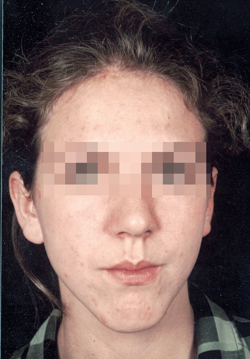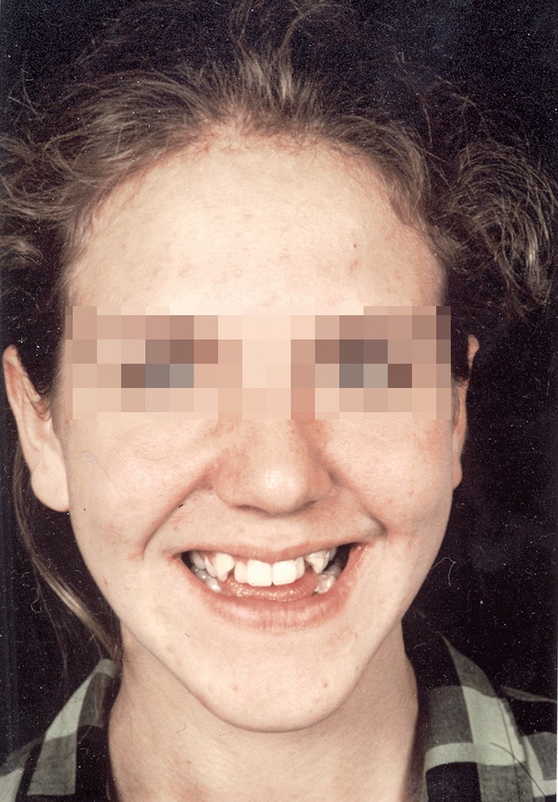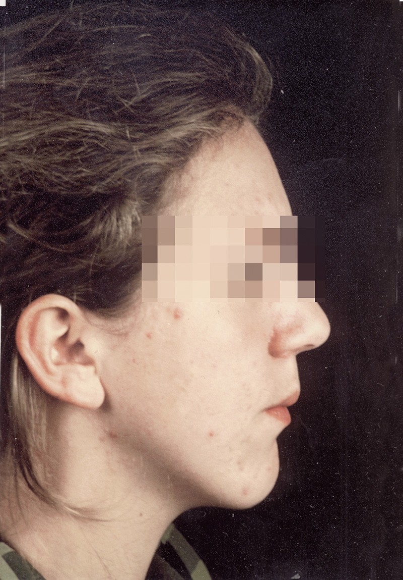 Au niveau squelettique, elle présente une classe I associée à une endognathie maxillaire et une hyperdivergence mandibulaire majeure liée à un excès de croissance alvéolaire verticale postérieure maxillaire et une inclinaison mandibulaire très marquée (fig. 1 et 3).