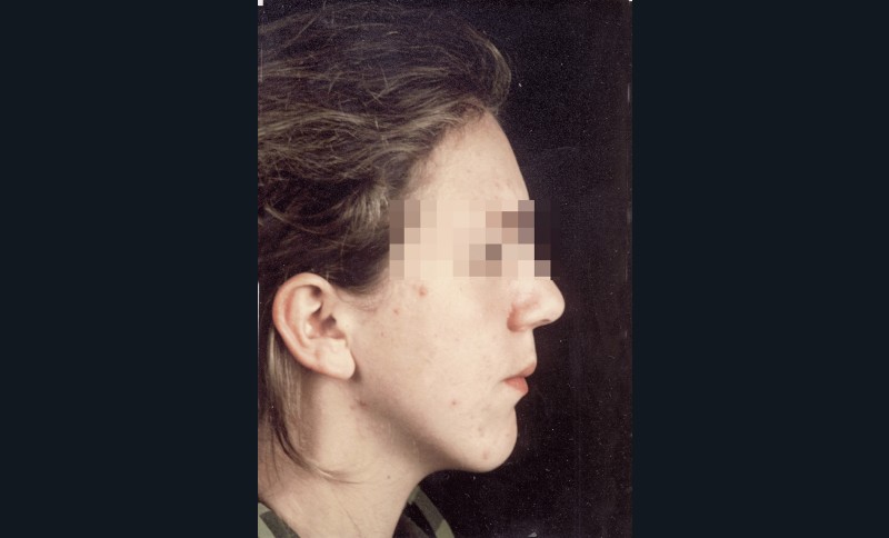 • une correction chirurgicale de la dysmorphose verticale et sagittale par une ostéotomie de Le Fort I d’impaction postérieure et d’avancée maxillaire associée à une génioplastie de réduction verticale (6 mm) et d’avancement (2 mm) pour adapter la position sagittale du menton,