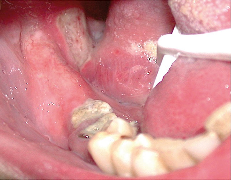 L’observation anatomopathologique est peu spécifique et doit être rapprochée du stade de l’aphte. Ainsi on décrira 4 phases :