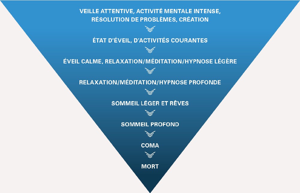L’hypnose est un état de conscience modifiée, différent de la veille ou du sommeil (fig. 1). En 2014, elle est définie au niveau international comme « un état de conscience impliquant une focalisation de l’attention avec une attention périphérique diminuée, et caractérisé par une capacité accrue à répondre à la suggestion » [1].