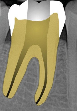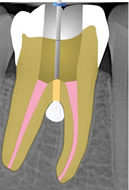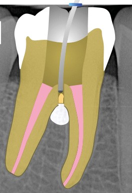 10. réaliser l’obturation canalaire en veillant à ne pas placer de ciment canalaire dans la perforation (celle-ci est protégée par du téflon) si le canal et la perforation sont très proches ;