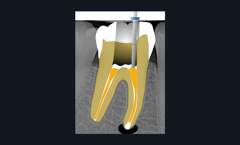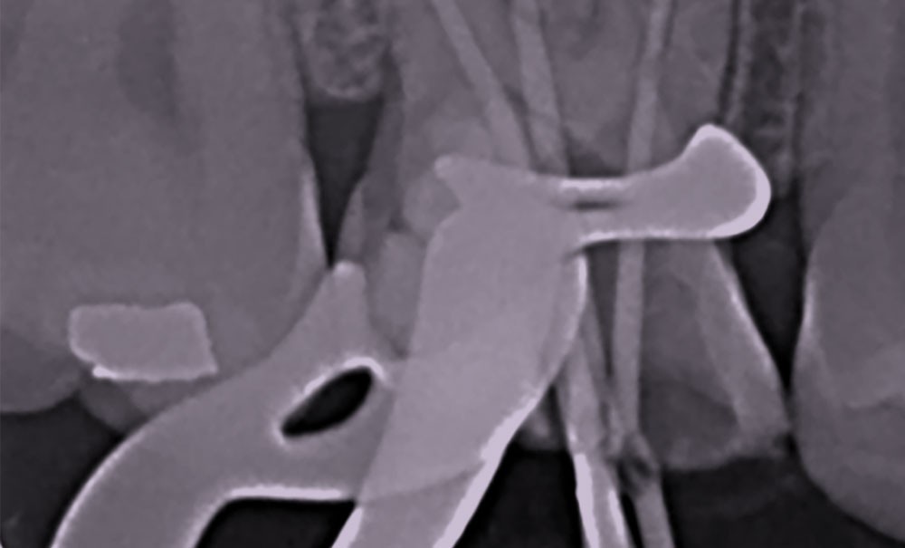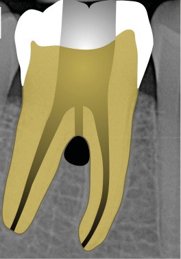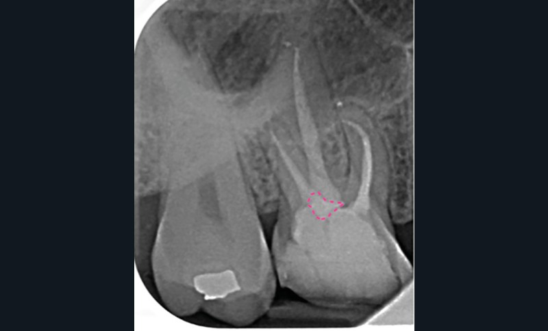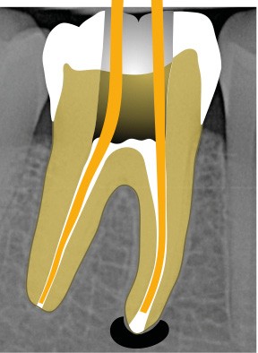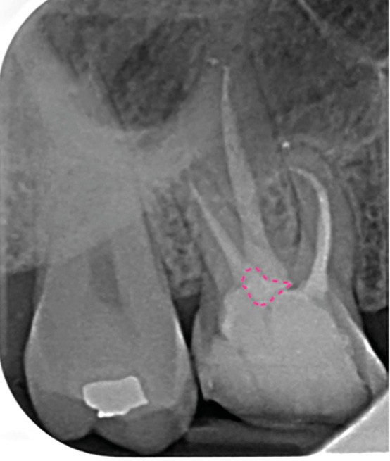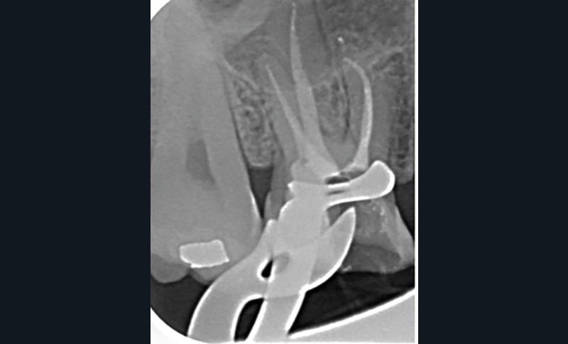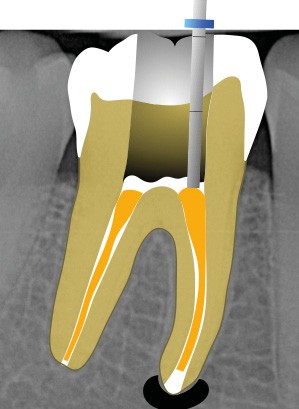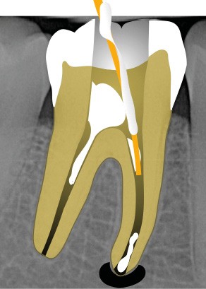 Perforation radiculaire sans accès visuel (exemple d’un zipping ou ovalisation du foramen apical) (fig. 6)