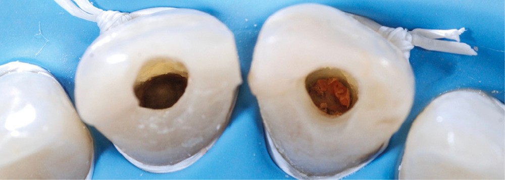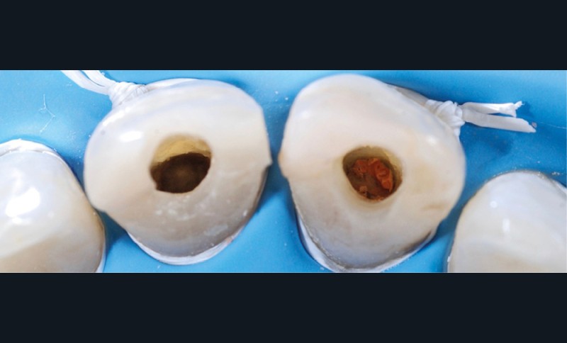 Ainsi, les ciments d’obturation canalaire sont la cause principale des dyschromies de la dent dépulpée [6]. Les modifications de couleur peuvent apparaître après une semaine seulement, lorsqu’il s’agit de ciments oxyde de zinc/eugénol (ZoE) [7, 8] ou à un mois post-traitement dans le cas de certaines biocéramiques [6].