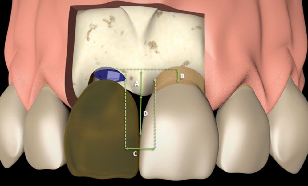 La stabilité de la papille dépend principalement de la présence d’un septum osseux sous-jacent, mais aussi des distances entre la dent naturelle, l’implant et la restauration prothétique [8]. Les conditions de sa reformation dépendent du phénotype des tissus mous [9], de la distance séparant le point de contact prothétique et le septum osseux proximal [4, 10, 11] et du protocole d’extraction-implantation immédiate [12].