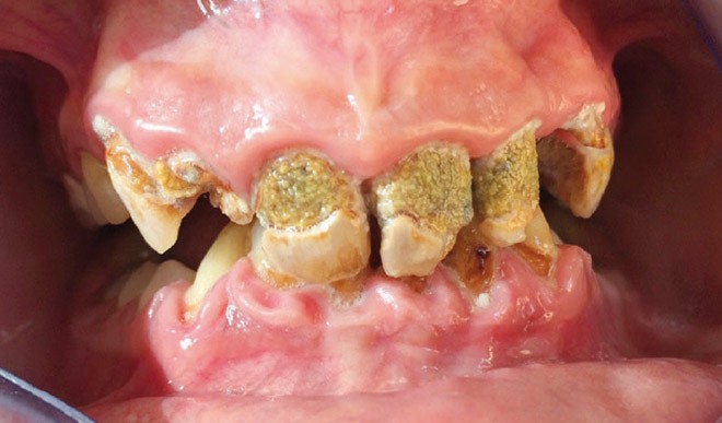 Les spécificités de la santé bucco-dentaire des patients à besoins spécifiques concernent notamment les déficits de l’hygiène buccale, les pathologies oro-faciales, les désordres esthétiques et fonctionnels et une plus grande proportion de pathologies parodontales [5, 6] (fig. 1).