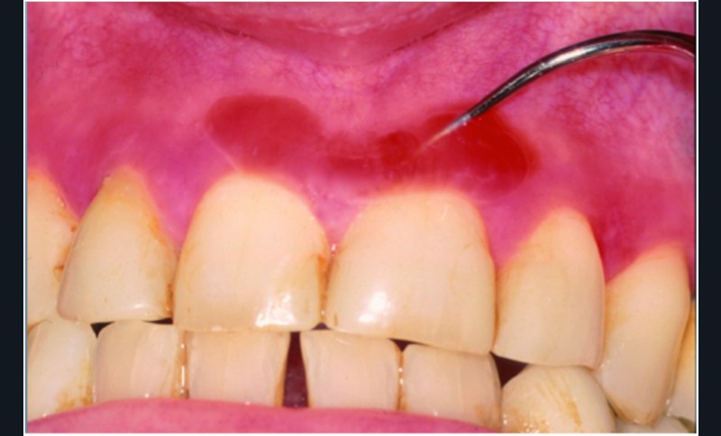 La patiente était en bonne santé et n’avait pas d’antécédents médico-chirurgicaux. C’est l’apparition de douleurs modérées lors de l’alimentation et du brossage des dents qui lui ont fait découvrir ses lésions gingivales.