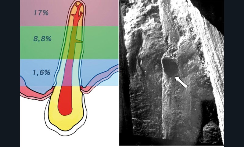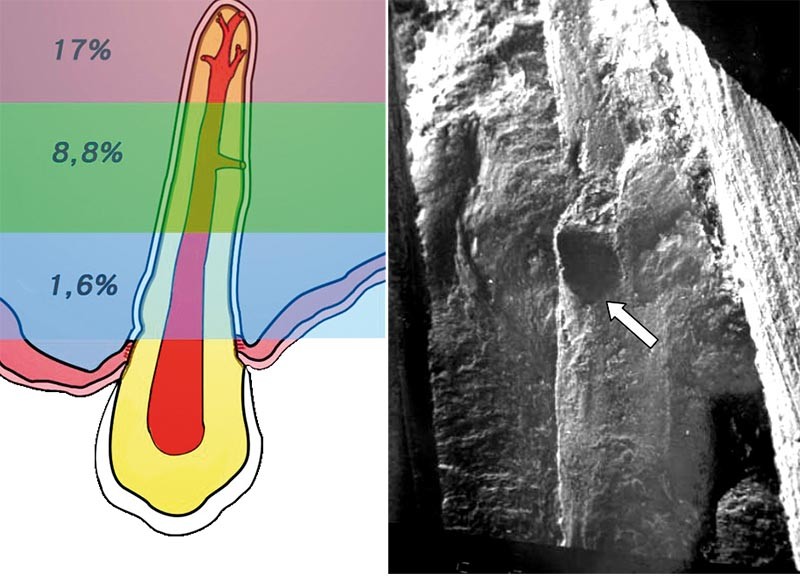 – la situation latérale de la lésion suggère un rapport direct de celle-ci avec le hiatus de l’ancrage canalaire observé.