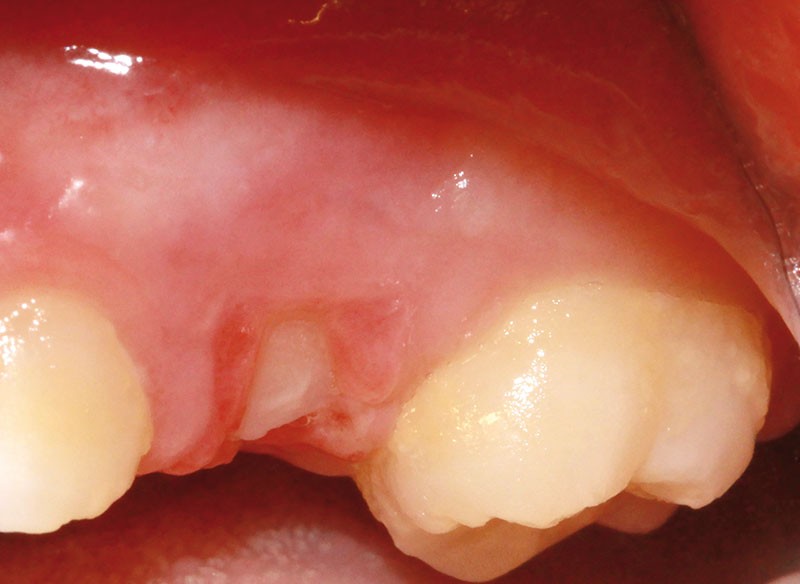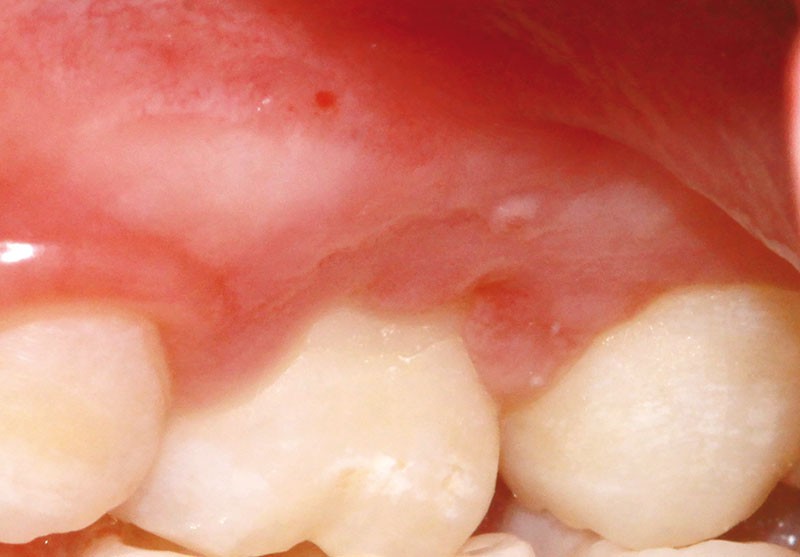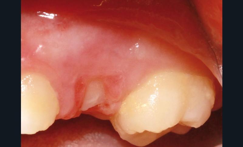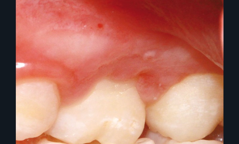 Une jeune fille âgée de 10 ans se présente à la consultation d’odontologie pédiatrique, accompagnée de sa mère qui s’inquiète de la persistance depuis plusieurs semaines d’une blessure gingivale secteur 1. La petite patiente est en bonne santé générale, ne prend aucun médicament et ne présente pas d’antécédents médicaux ou chirurgicaux. Par ailleurs, l’interrogatoire médical ne permet pas de déterminer l’origine de la blessure : ni l’enfant, ni sa mère ne se souviennent d’un geste traumatisant et aucun soin dentaire n’a été récemment prodigué, excluant l’origine iatrogène.
