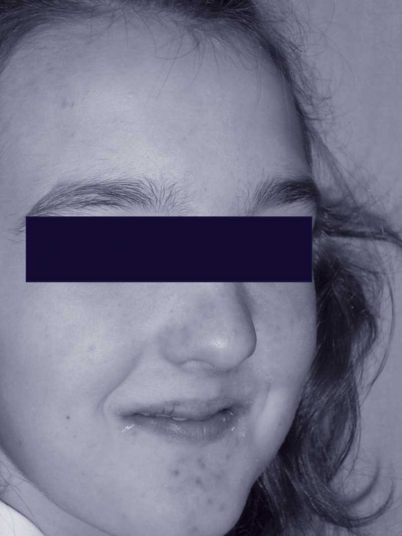 Pour les raisons précitées, les traitements orthodontiques menés en collaboration avec un chirurgien maxillo-facial sont de plus en plus fréquents [7]. Dans le cas clinique qui illustre cet article, il s’agit d’une jeune fille âgée de 13 ans lors la première consultation (fig. 1, 2, 3).