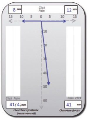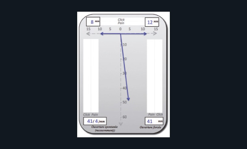 Algie ancienne de l’ATM gauche, sensation d’ouverture limitée et déviée à droite.