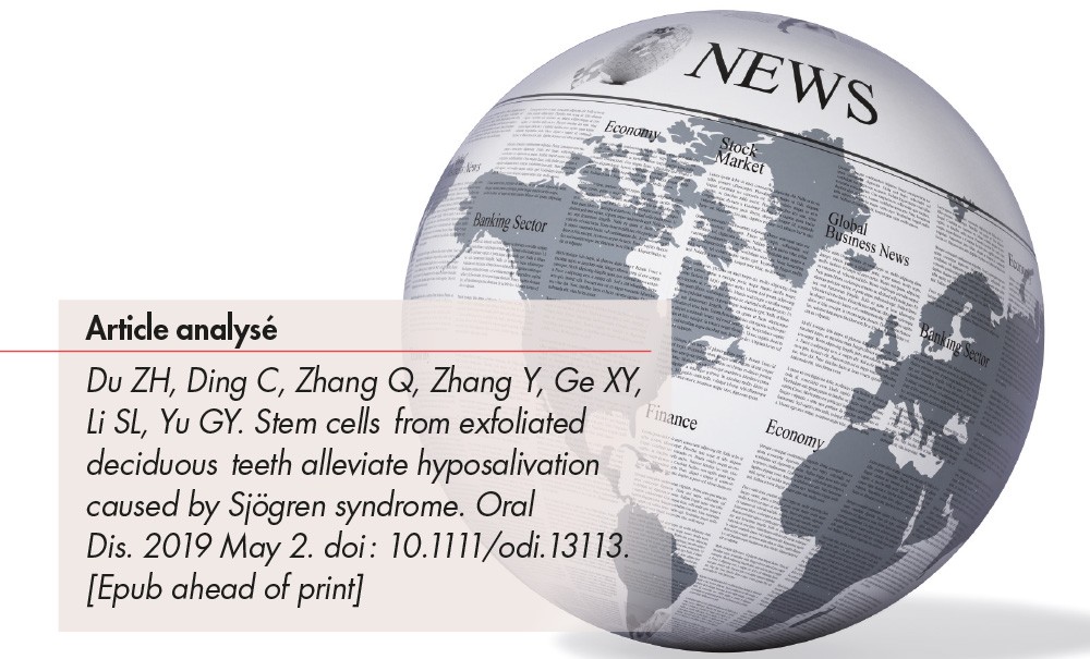 Cette équipe chinoise associant cliniciens et chercheurs a évalué dans le modèle murin du syndrome de Gougerot Sjögren (SGS) les effets sur l’hyposialie d’une injection intraveineuse de cellules souches de dents temporaires exfoliées ou avulsées.