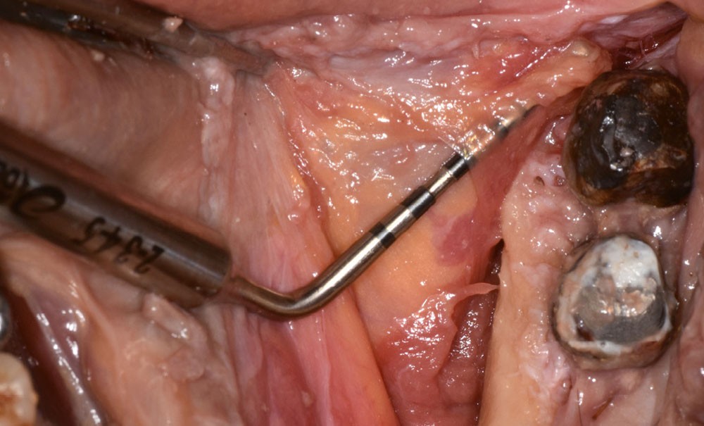 Rapports de la muqueuse alvéolaire linguale avec le plancher buccal et la loge sublinguale