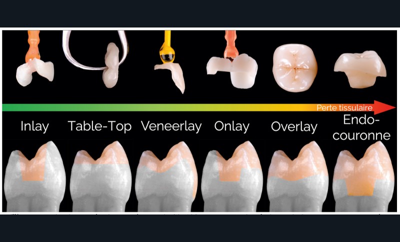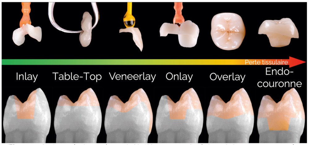 Le degré d’intégrité des tissus résiduels et l’état biologique de la dent ont un impact sur le choix de la RPP appropriée (fig. 1). Un ensemble de lignes guides peut être suivi lors de la préparation afin d’offrir le design idéal à la RPP [1].